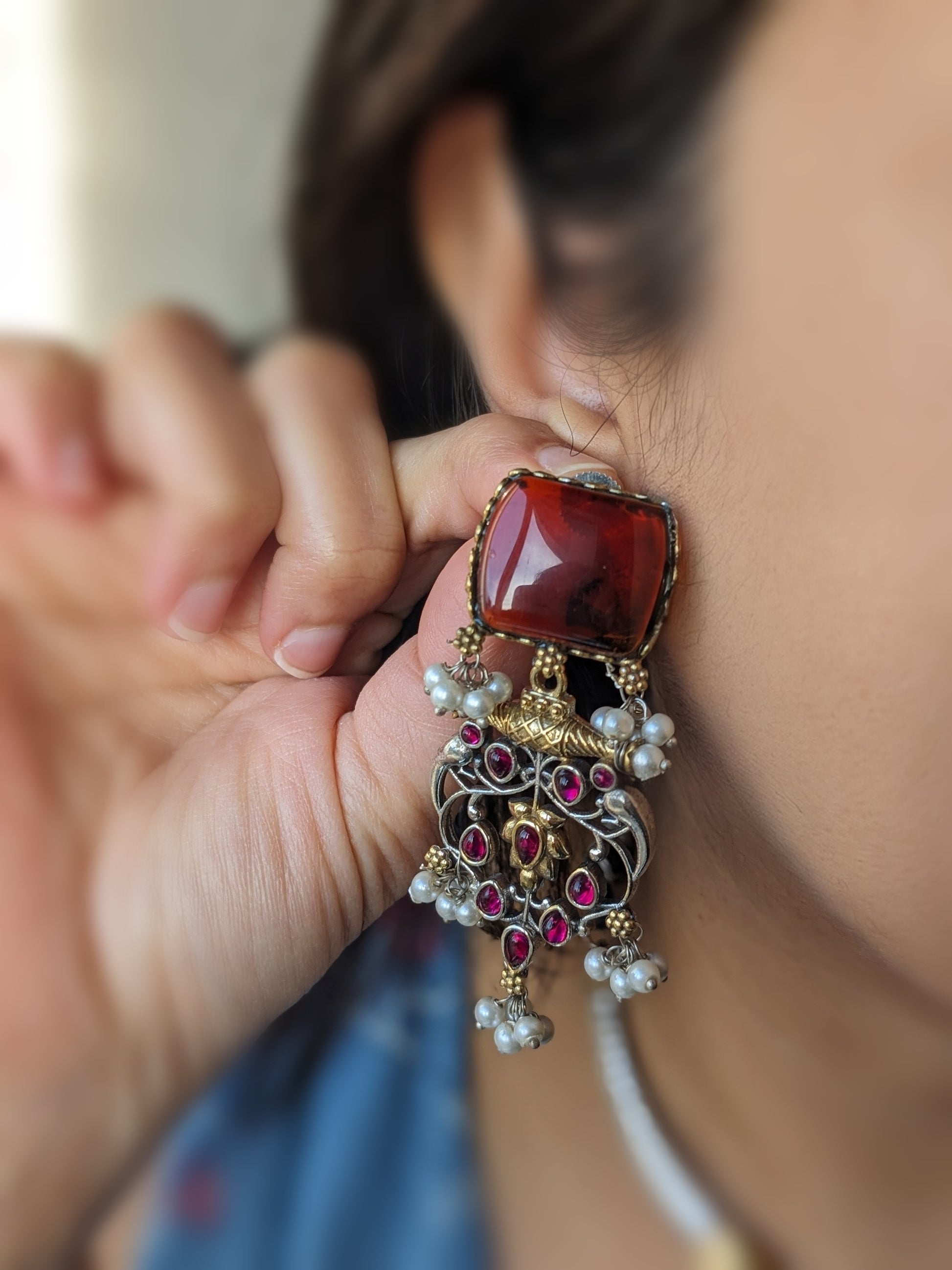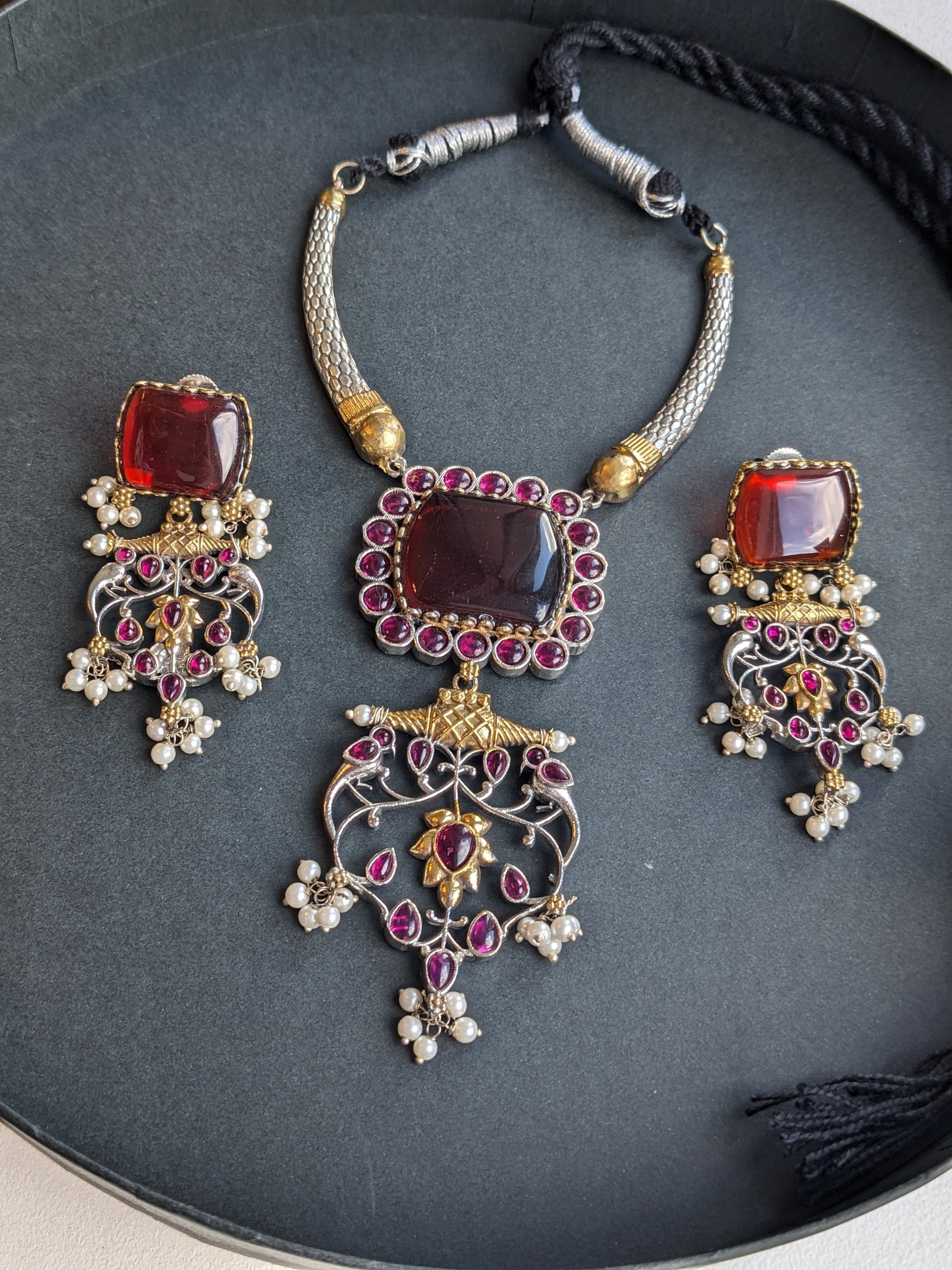 Premium dual tone Hasli Set with a black "dori", adorned with a large Monalisa stone